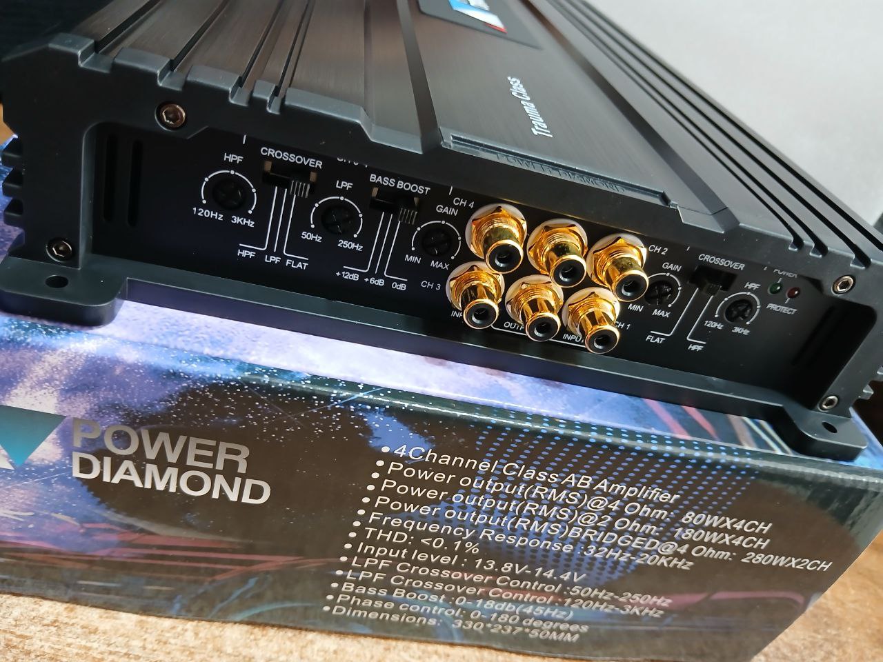 آمپلی فایر پاور دیاموند 80.4 دارای اعوجاج نویز هارمونیک کمتر از 1 درصد می باشد. همچنین ورودی سطح بلندگوی این دستگاه هم معادل 13.8V-14.4V است.