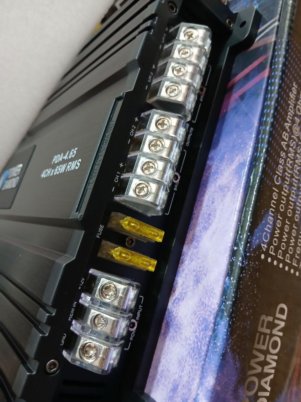 آمپلی فایر پاور دیاموند 65.4 دارای اعوجاج نویز هارمونیک کمتر از 1 درصد می باشد. همچنین ورودی سطح بلندگوی این دستگاه هم معادل 13.8V-14.4V است.